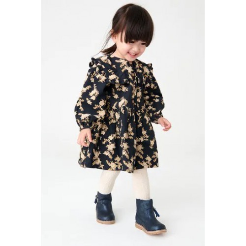 印花燈芯絨翻領連衣裙 (3個月至7歲)